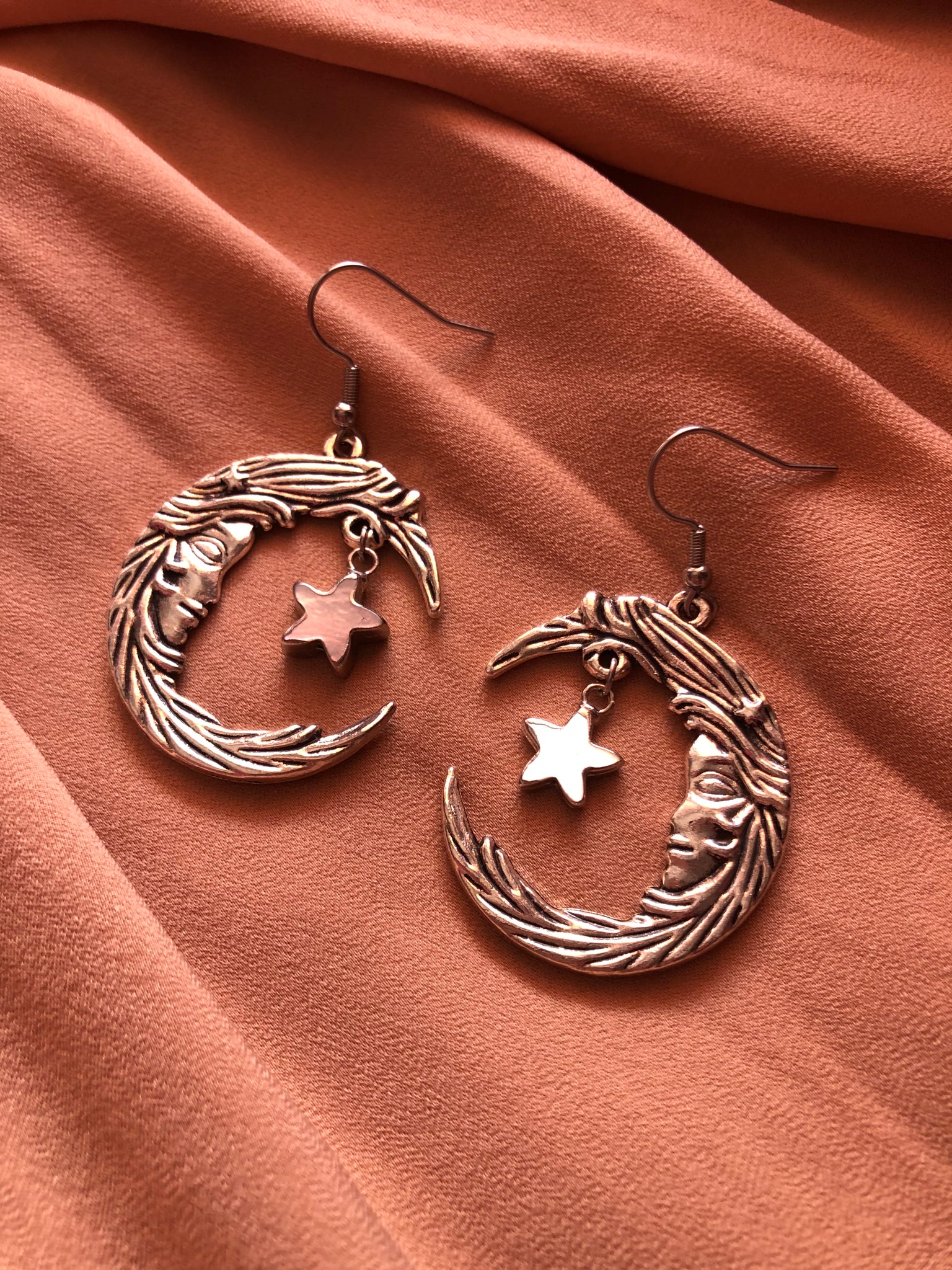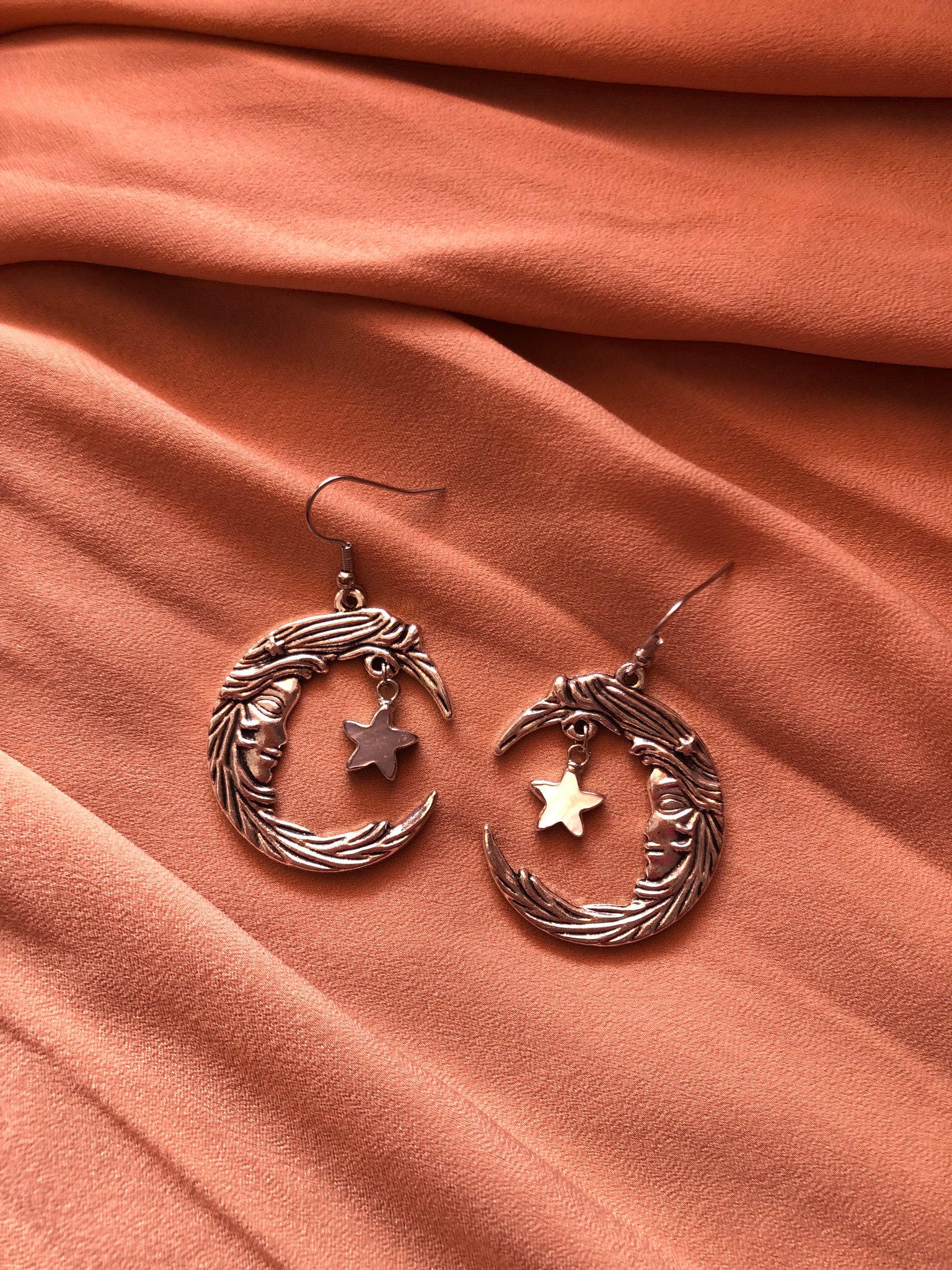 Brincos Lua com estrela em madrepérola.